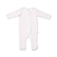 This pack includes two soft, breathable cotton zipsuits: one classic white with delicate pink spots, and one pink and white stripe design. Featuring a convenient 2-way zip, these suits allow quick changes without fuss, while the footed design and long sleeves provide extra warmth and protection.