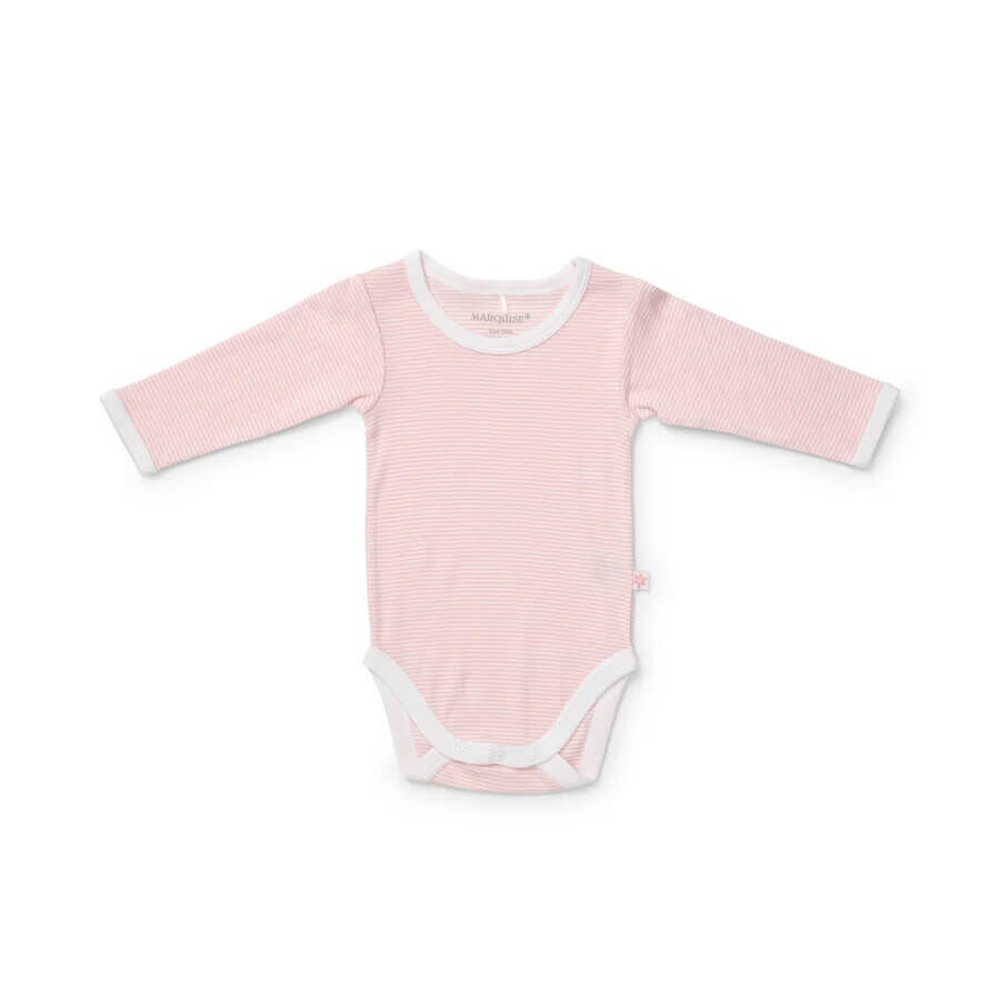 Each pack includes two versatile designs: one crisp white bodysuit with a sweet pink floral print, and one in a soft pink fine stripe. Both styles are timeless, durable, and easy to wash, making them practical for everyday use.