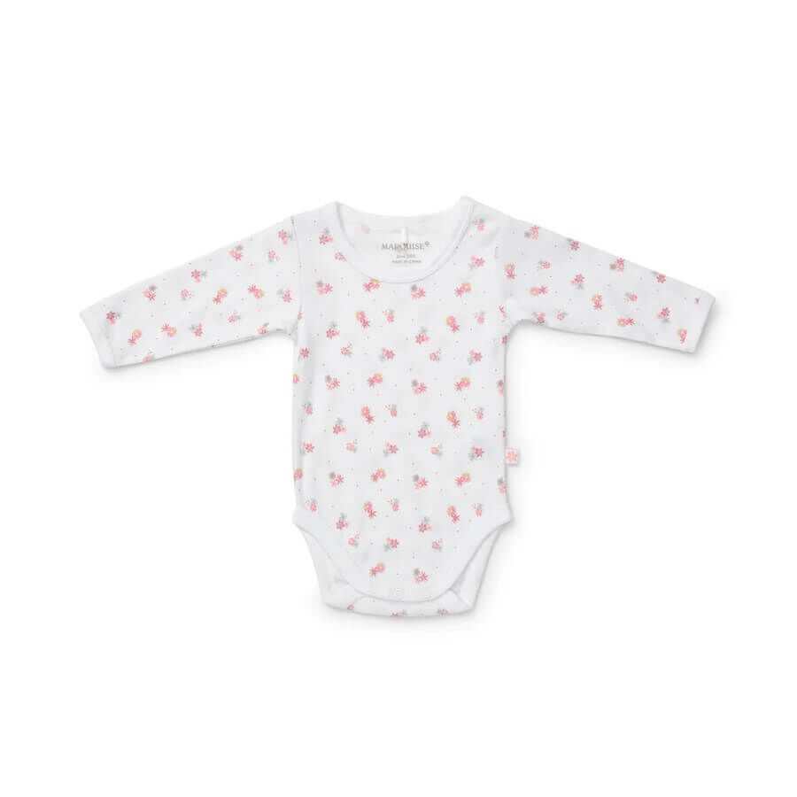 The Marquise Everyday Essentials Floral & Stripes Baby Bodysuit 2 Pack is an essential wardrobe staple for newborns and infants. Designed with comfort and practicality in mind, these long sleeve bodysuits are made from soft, breathable 100% cotton that’s gentle on delicate baby skin.