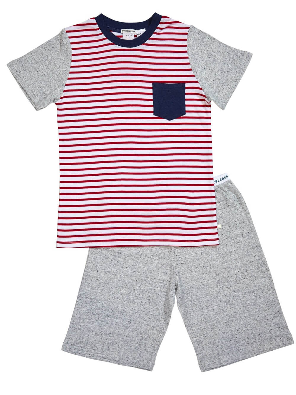 Boys 10-16 Huckleberry Red Stripe Summer Cotton Short Sleeve Pyjama Set