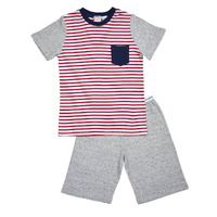 The short sleeve red and white striped top adds a bold, modern look, complemented by soft grey sleeves for a sporty, laid-back finish. Paired with relaxed fit grey long shorts, this set offers a comfortable silhouette that allows growing boys and teens to move freely whether sleeping or relaxing.