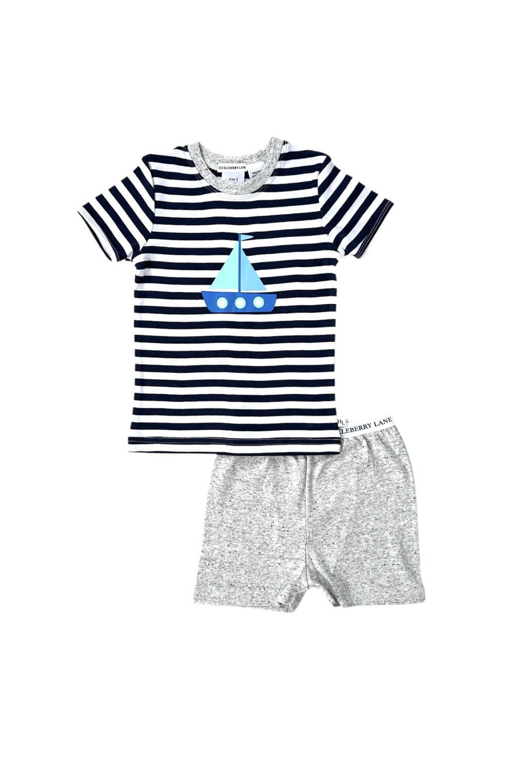 Boys 5-8 Huckleberry Blue Boat Summer Cotton Short Sleeve Pyjama Set