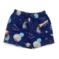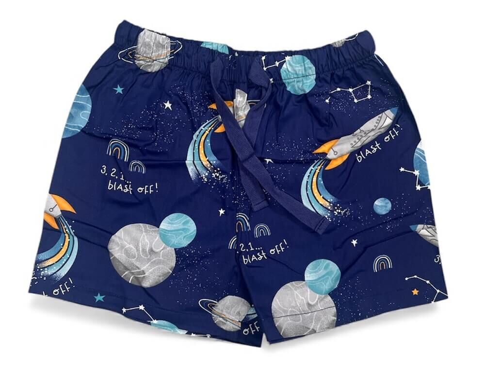 - Navy blue shorts with rockets and planets all-over print
