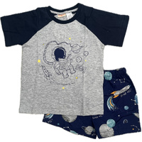 Boys Size 10-14 Grey Space Astronaut Summer Cotton Short Sleeve Pyjama Set (Me)