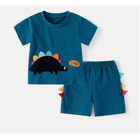 Boys Size 3-7 Blue Dinosaur Summer Cotton Short Sleeve Pyjama Set (Me)