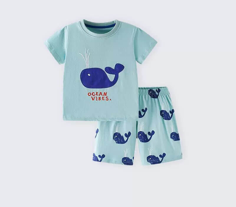 Let your little dreamer drift into cosy summer sleep with the Boys Blue Whale Ocean Summer Cotton Short Sleeve Pyjama Set, available online at Pyjamamania. Designed for warm nights, holidays, and everyday bedtime comfort, this lightweight cotton boys pyjama set combines breathable softness with a fun ocean-themed design kids love.