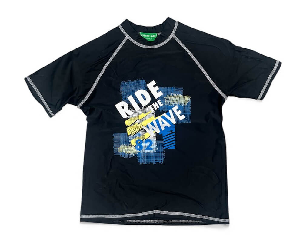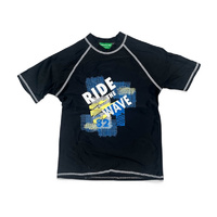Boys Size 8-16 Black Ride The Wave Summer Short Sleeve Rash Top Bathers Swimwear UPF50+