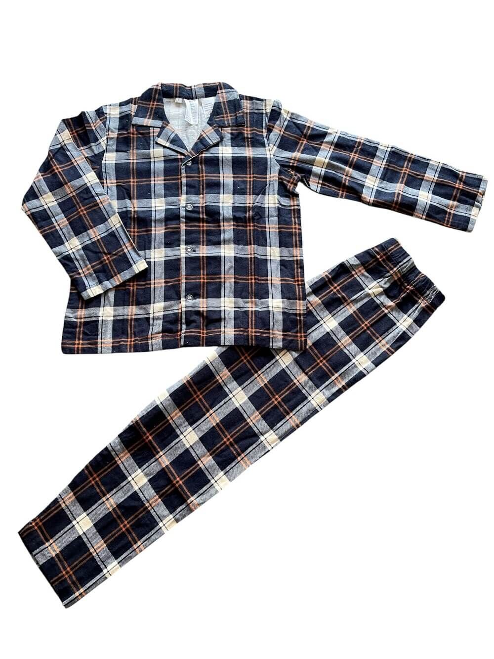 Boys Size 8-16 Navy Orange Check Winter Cotton Flannel Long Sleeve Pyjama Set (Me)