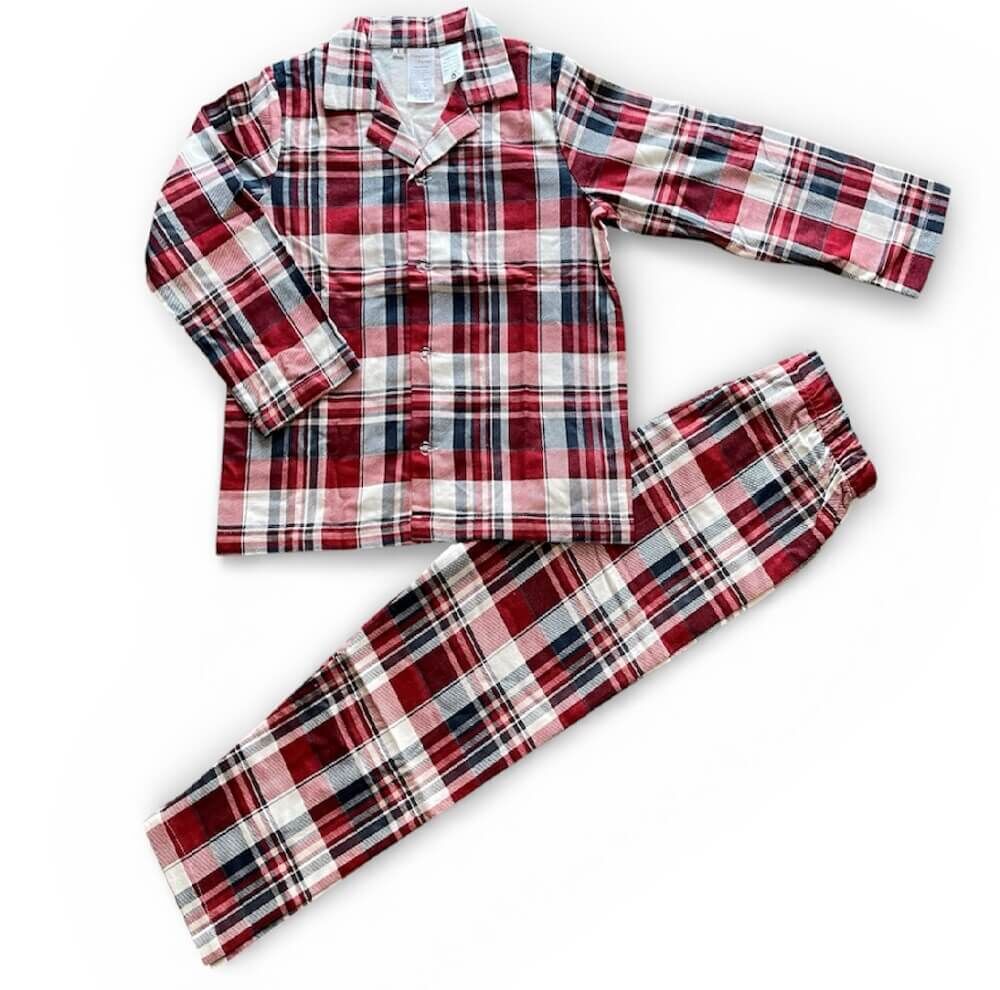 Boys Size 8-16 Red Navy Check Winter Cotton Flannel Long Sleeve Pyjama Set (Me)