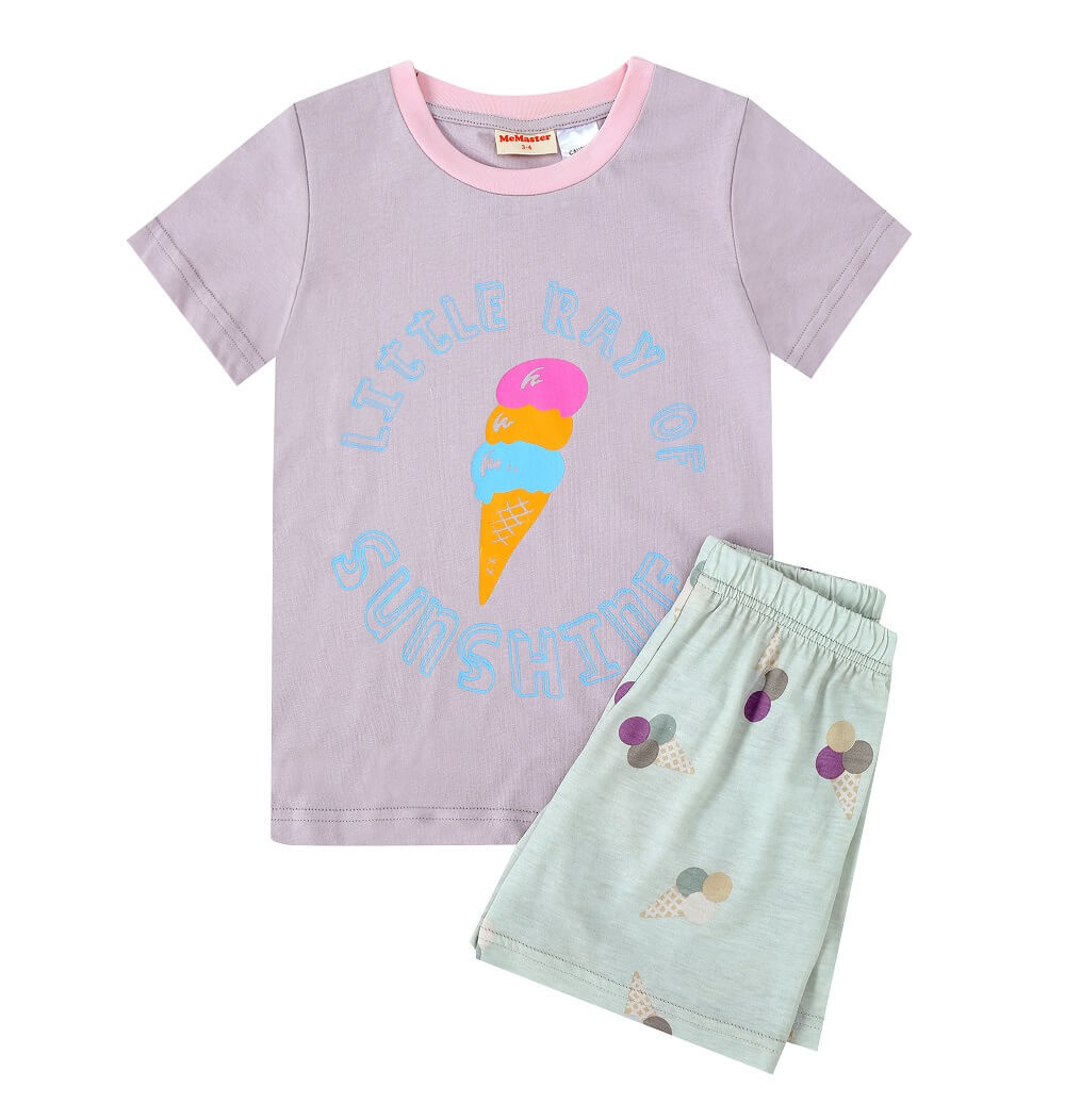 Girls Size 3-8 Lilac Ice Cream Cone Summer Cotton Short Sleeve Pyjama Set (Me)