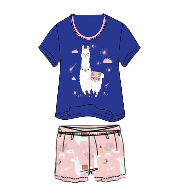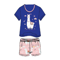 Girls Size 3-8 Navy Blue Llama Summer Cotton Short Sleeve Pyjama Set (Me)