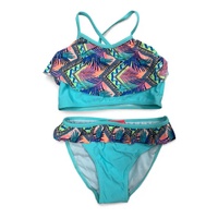 Girls Size 8-14 Aqua Aztec Palm Tankini Set Summer Swimsuit Bathers Swimwear UPF50+