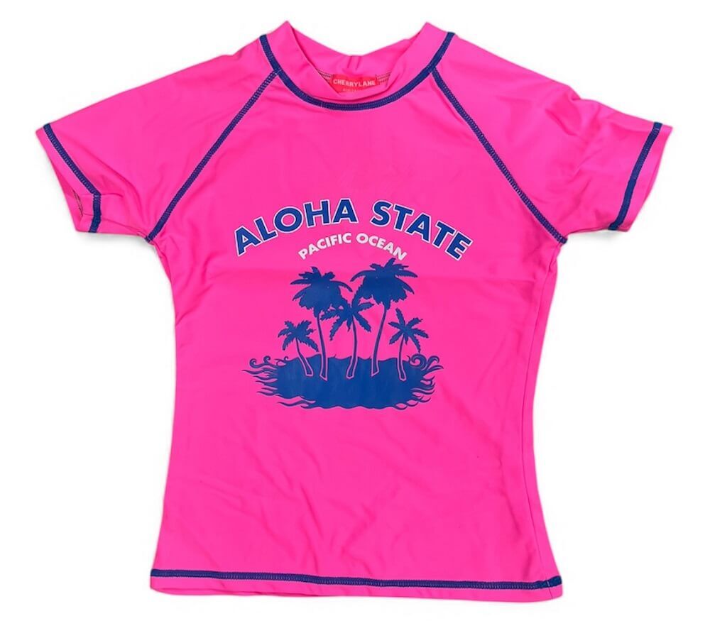 Girls Size 8-16 Hot Pink Aloha Summer Short Sleeve Rash Top Bathers Swimwear UPF50+