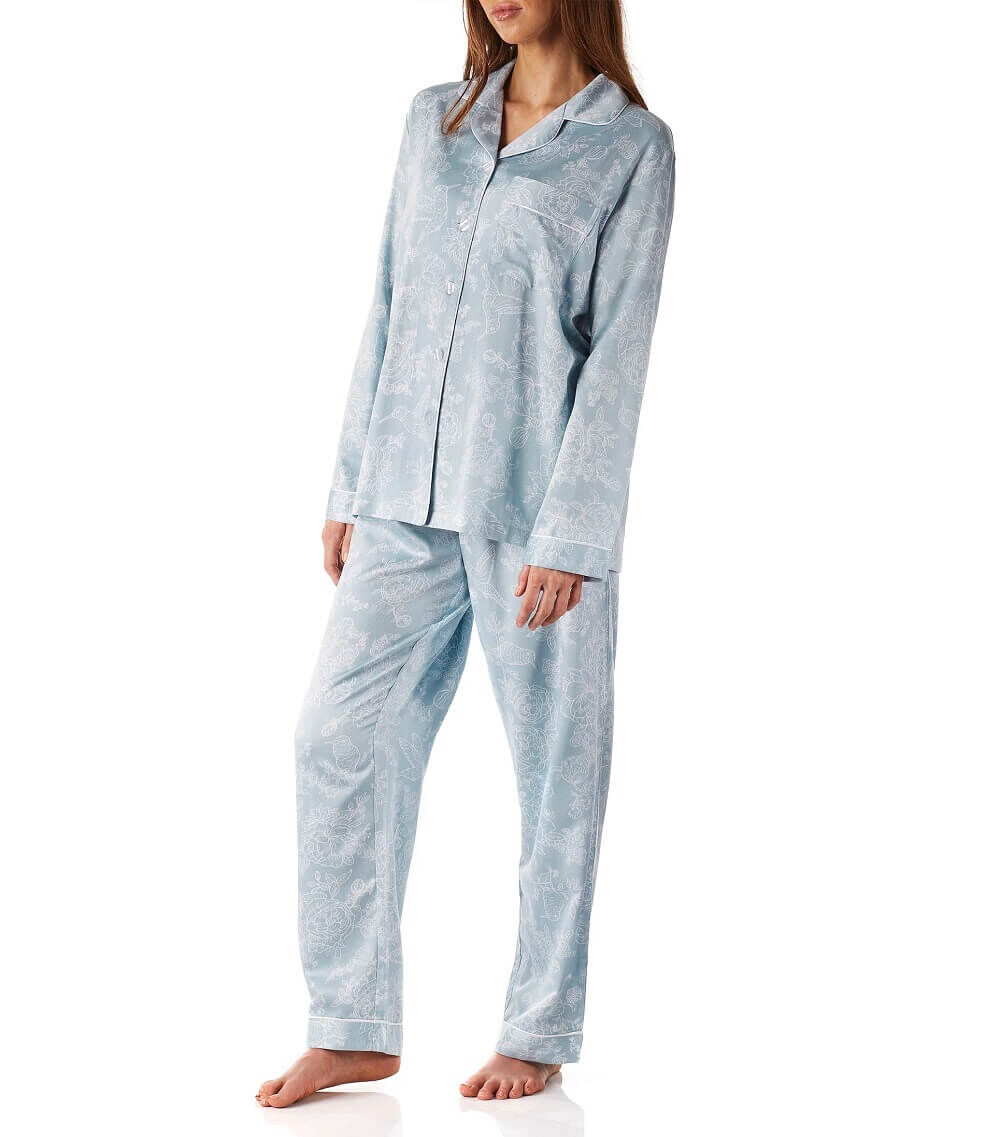 Womens Magnolia Lounge Pyjama Set Long Winter Sateen – Blue Floral