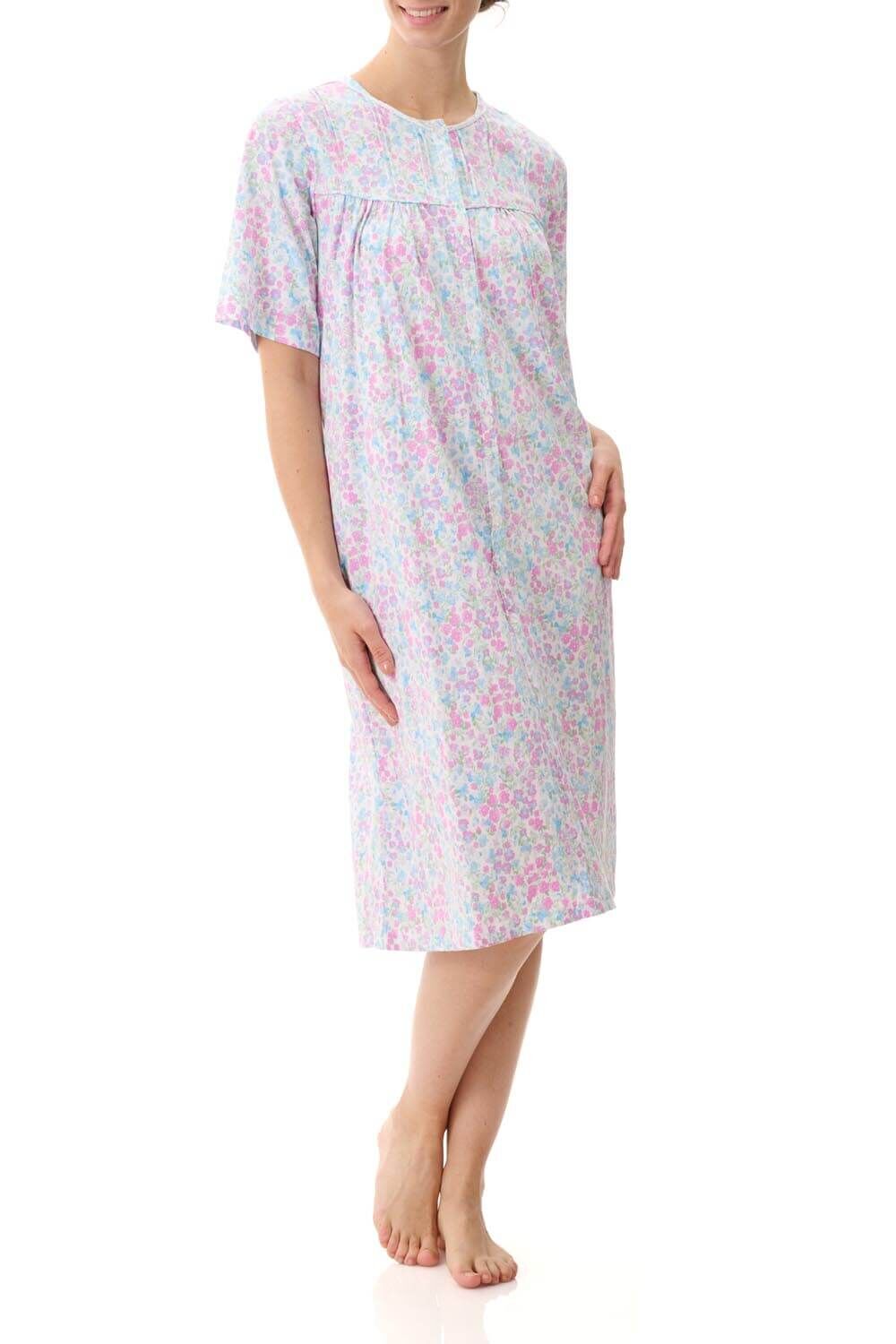 Designed with short sleeves and a relaxed fit, this breathable cotton brunchcoat offers exceptional comfort whether worn over your favourite nighties or as a casual robe at home. The full button front closure and convenient side inset pockets enhance functionality while maintaining a feminine and fashionable look.