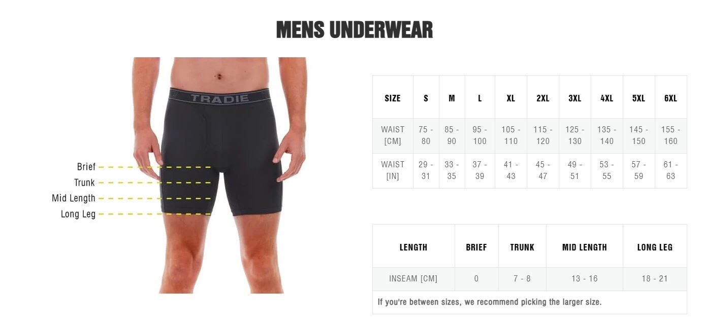 - Official Tradie brand underwear — reliable Australian quality