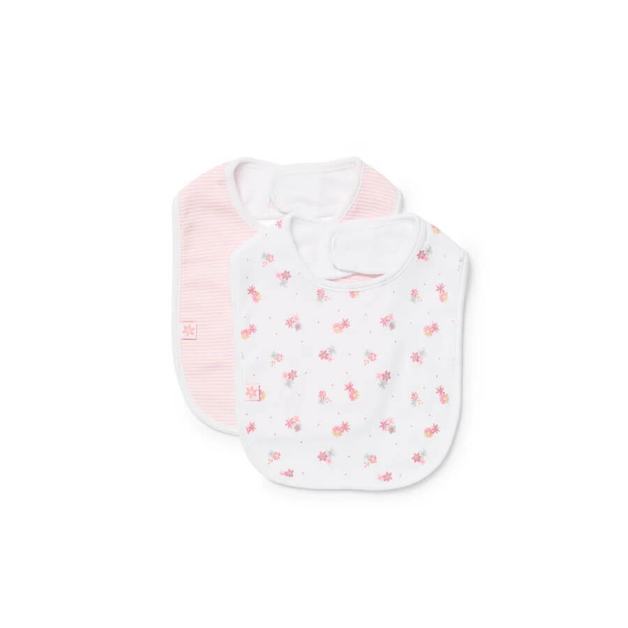 Baby Girls Marquise 2 Pack Pink Floral & Stripe Cotton Bibs
