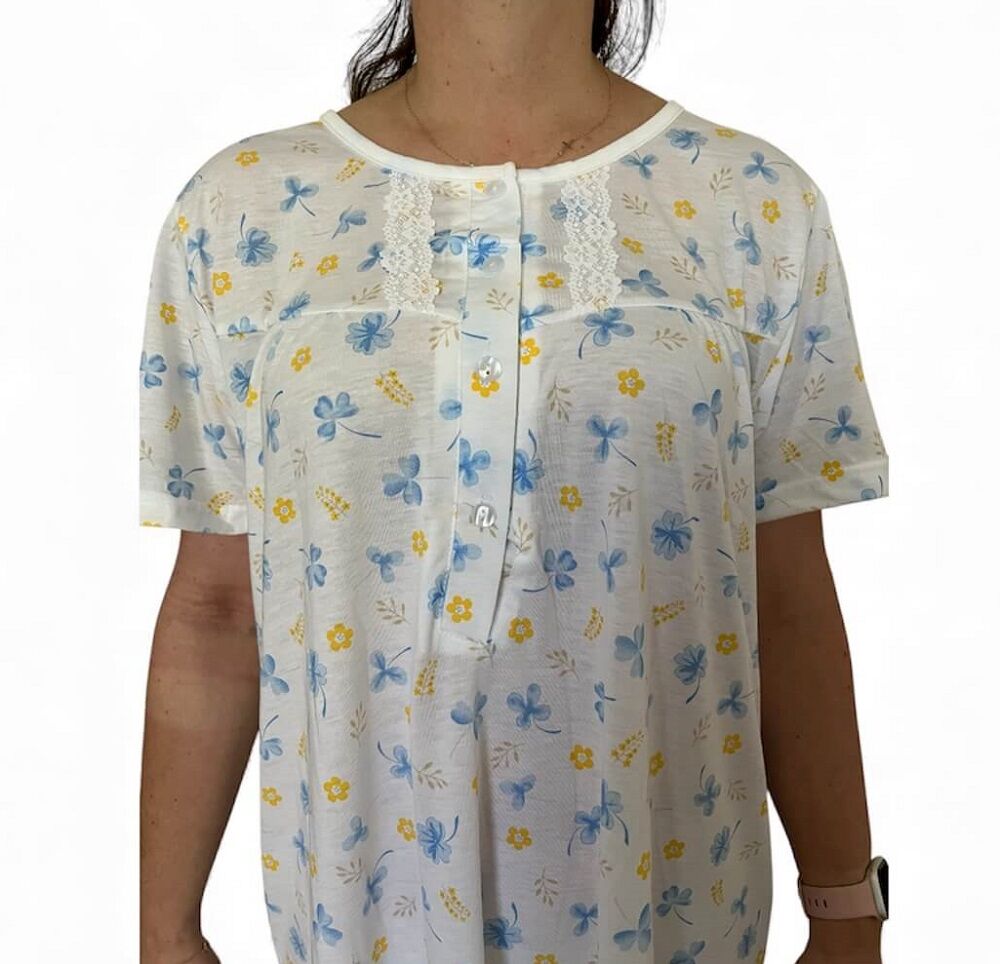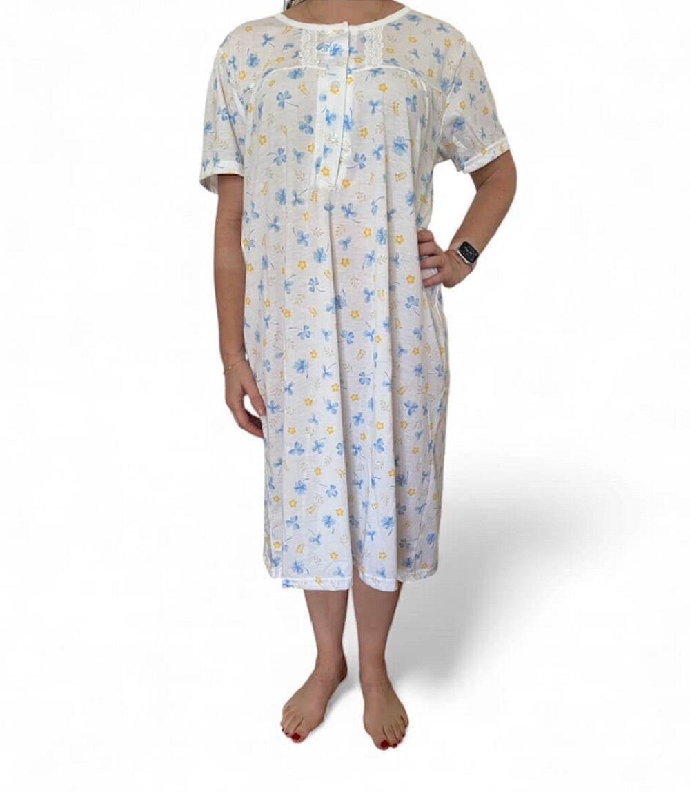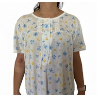Womens Blue Yellow Floral Summer Cotton Short Sleeve Nightie Short Length – LS29