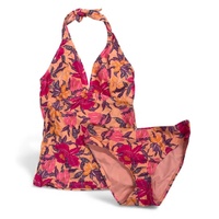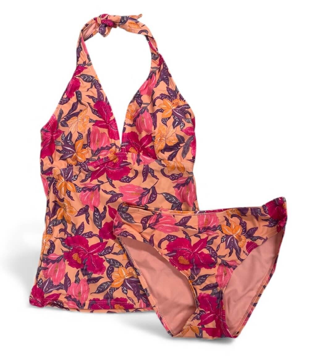 - Women’s 2 piece coral pink floral print tankini set