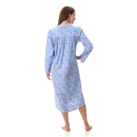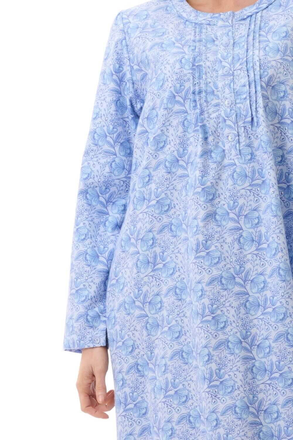 Womens Givoni Blue Long Sleeve Winter Cotton Flannel Nightie Mid Length 71K (Kora)