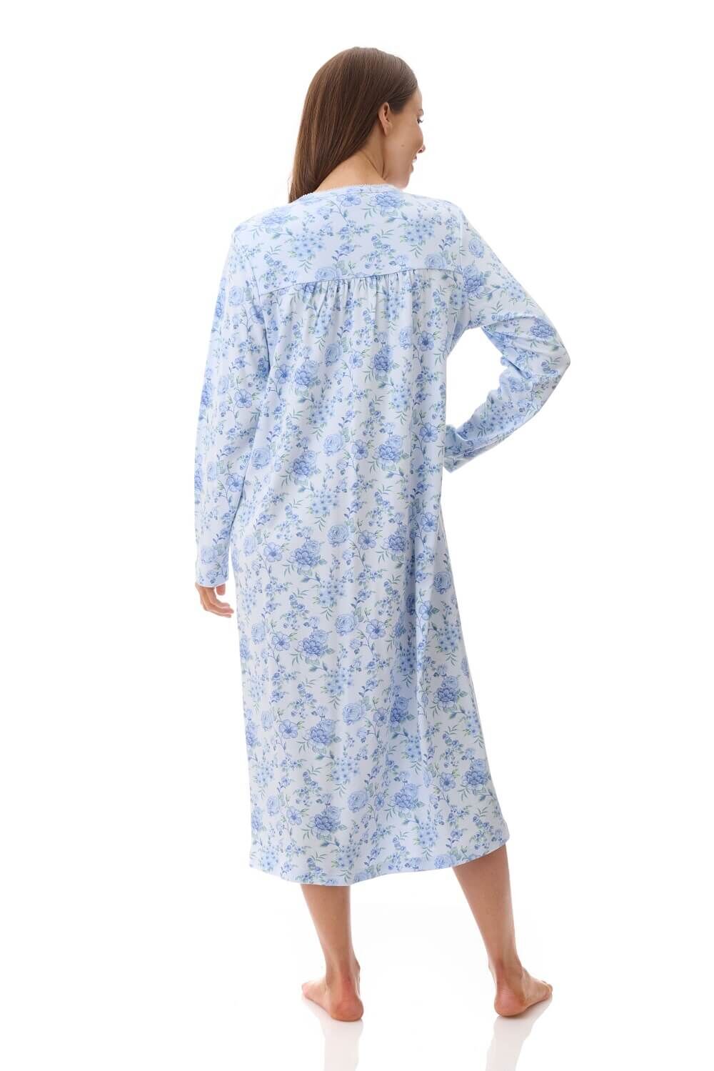 Womens Givoni Blue Long Sleeve Winter Cotton Nightie Mid Length 90M