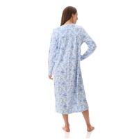 Womens Givoni Blue Long Sleeve Winter Cotton Nightie Mid Length 90M (Mira)