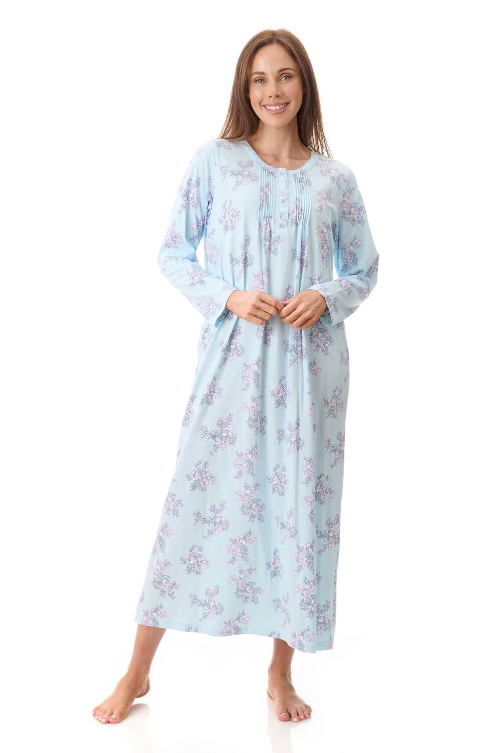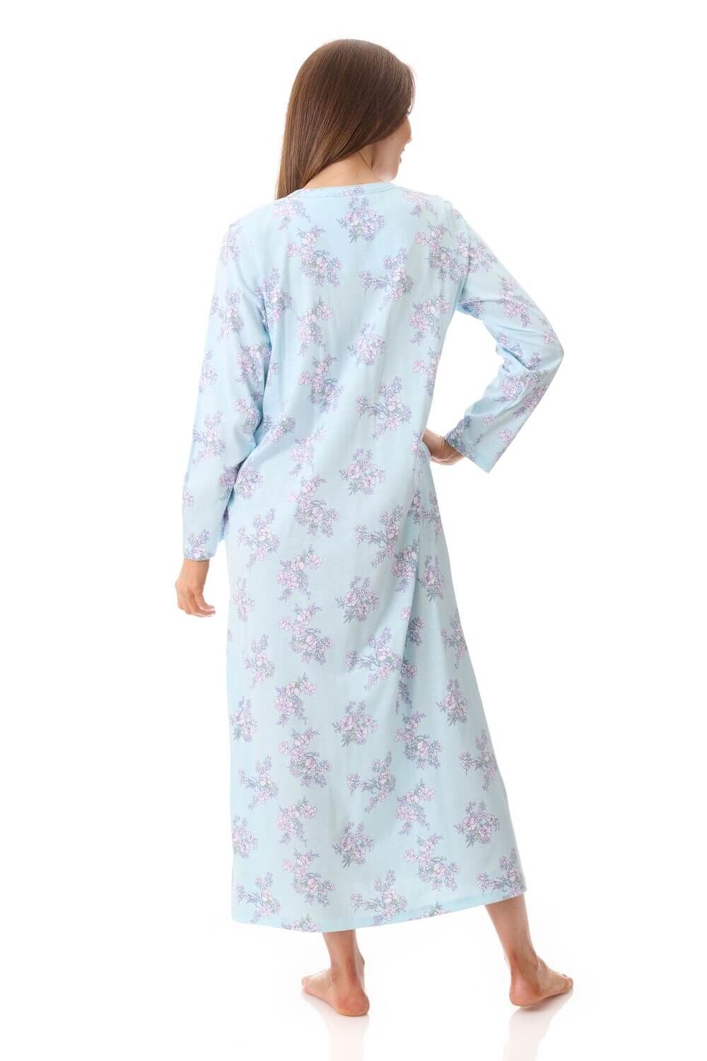 Womens Givoni Blue Mint Long Sleeve Winter Cotton Nightie Long Length 45L Leah