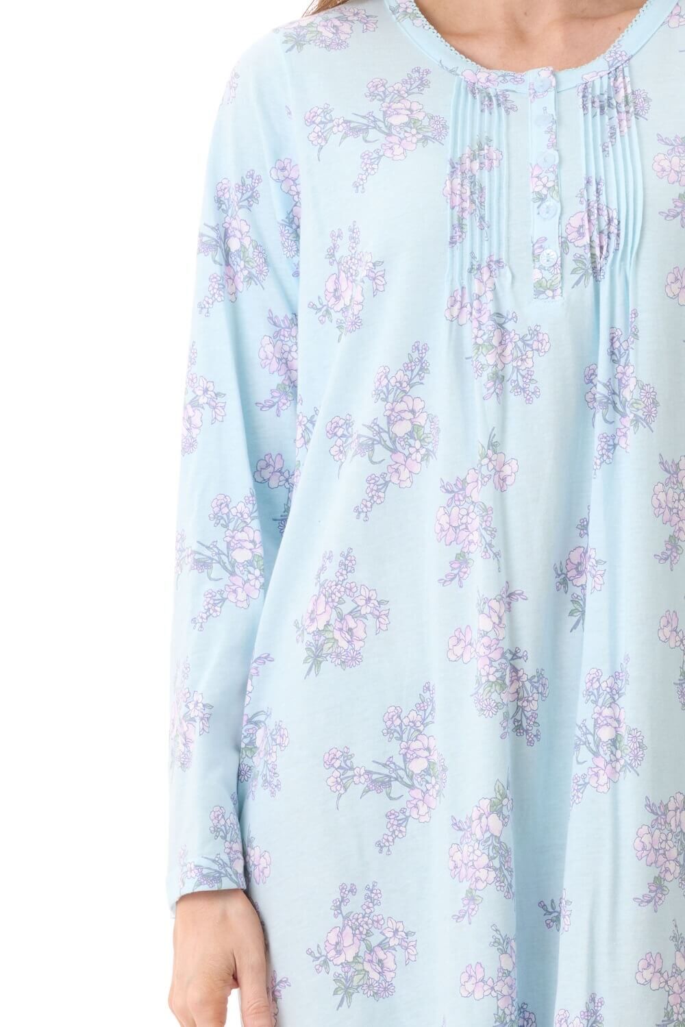 This classic nightie features a round neckline with detailed picoette stitching, adding a soft and refined finish. Pintuck detailing on either side of the front placket opening enhances the overall design, creating a flattering and timeless silhouette that suits a wide range of body shapes.