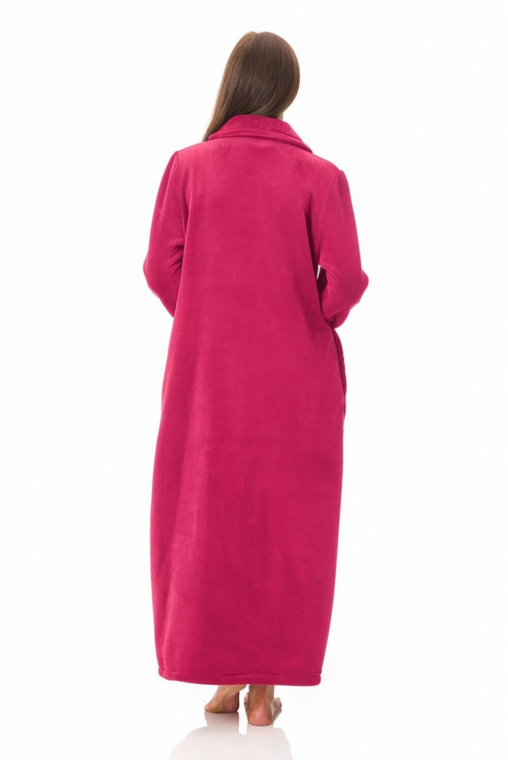 Womens Givoni Magenta Button Long Length Luxury Fleece Dressing Gown Robe 40