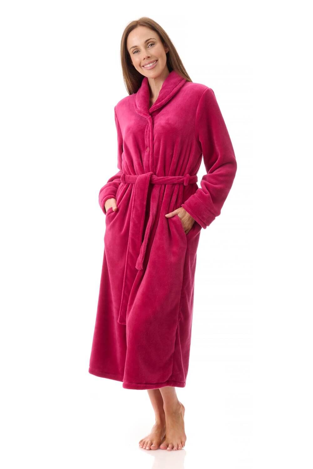 Womens Givoni Magenta Mid Length Button Wrap Luxury Dressing Gown Bath Robe – 77