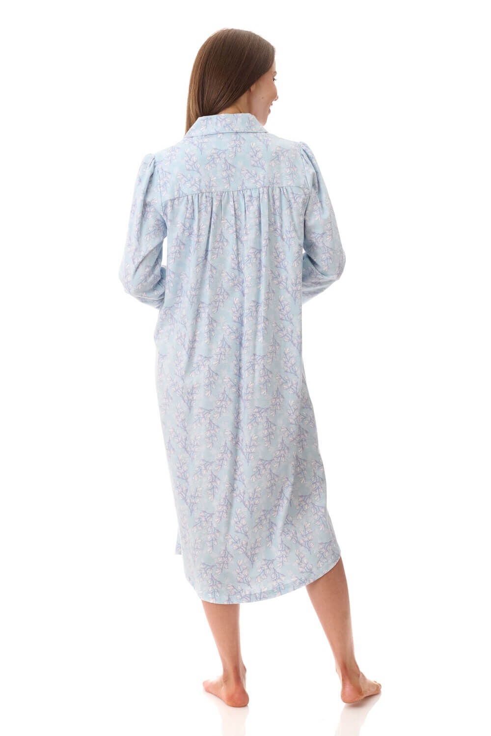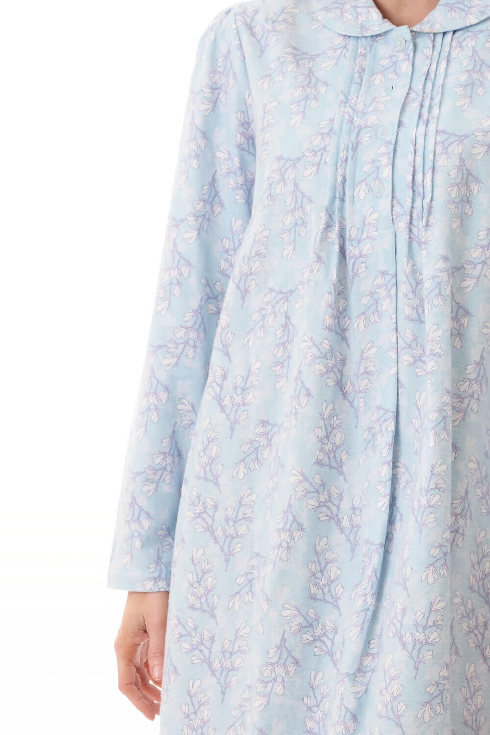 The "Jamie" mid length nightie features a soft mint print that offers a fresh and feminine look while maintaining a classic and practical design. The flannelette fabric is warm yet lightweight, making it ideal for those searching for mid length flannel nighties, warm cotton nightgowns, or breathable winter sleepwear for women in Australia.