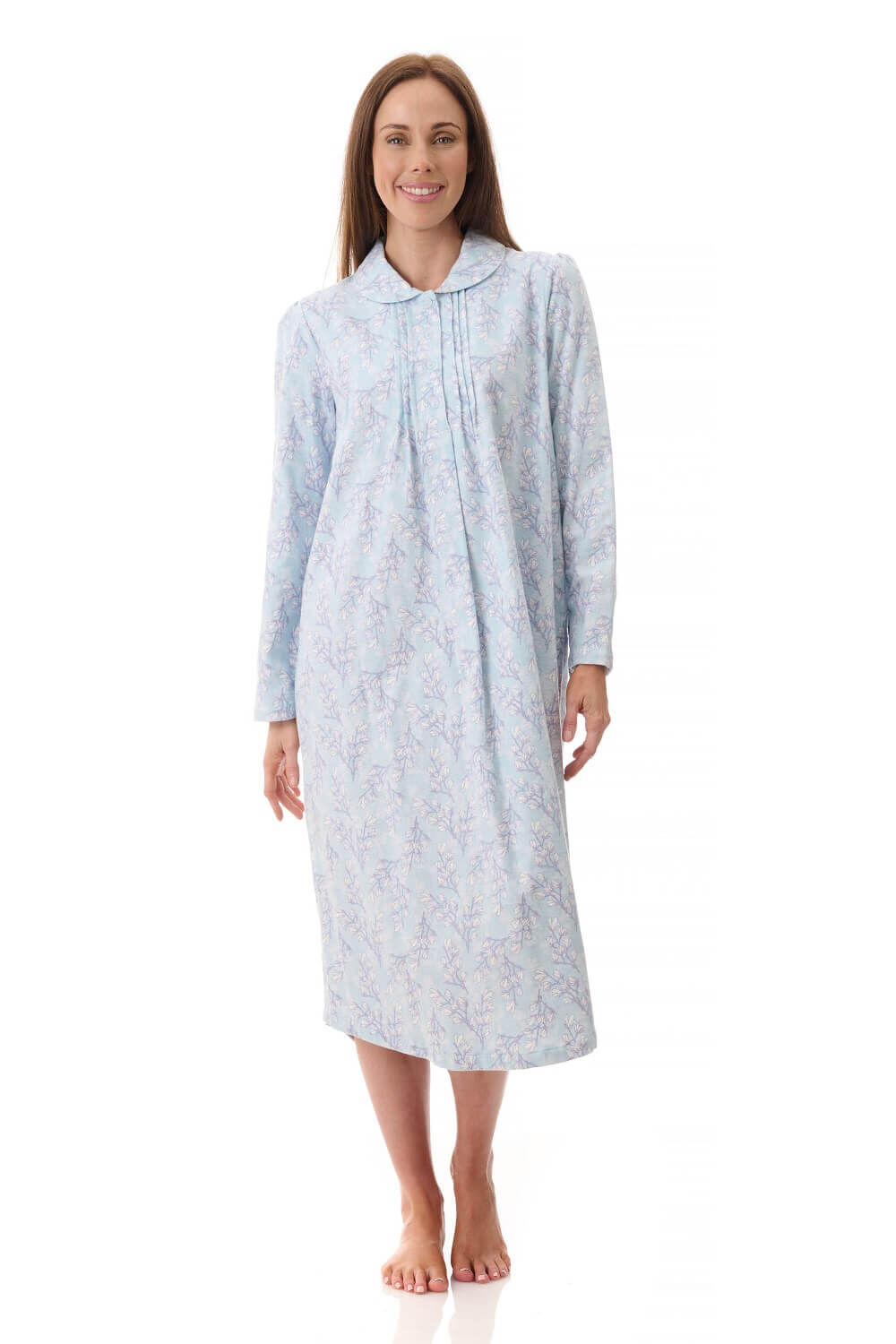 Womens Givoni Mint Long Sleeve Winter Cotton Flannel Nightie Mid Length 92J (Jamie)