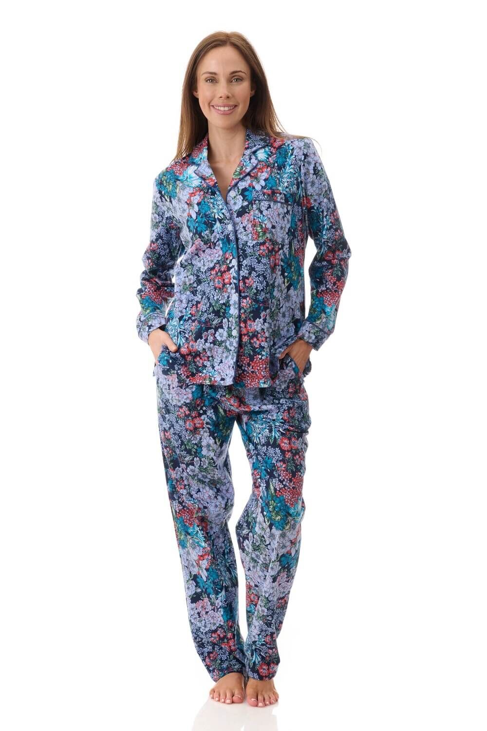 Womens Givoni Multi Floral Long Sleeve Winter Cotton Flannel Pyjama Set 96F Frida