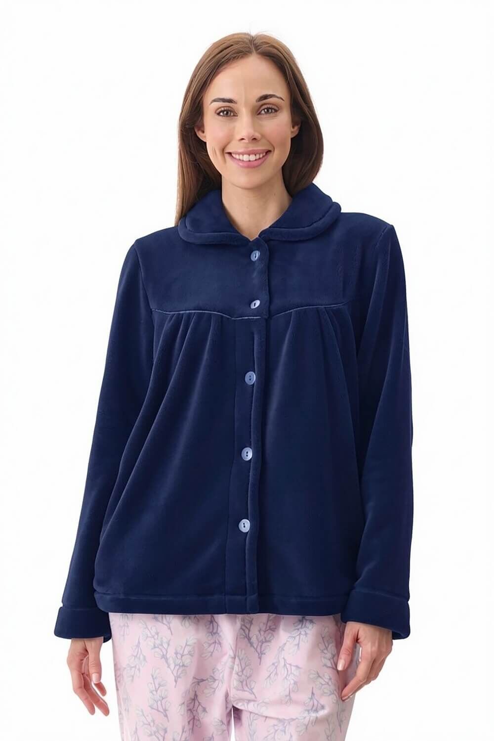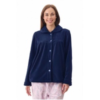 Womens Givoni Navy Blue Button Up Luxury Fleece Winter Bed Jacket Lounge Wear 72