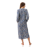 The "Ariel" long sleeve brunchcoat features a deep navy blue floral print, delivering a sophisticated and timeless look that complements your winter nightwear collection. The silky knit fabric, made from a nylon and elastane blend, provides stretch and ease of movement, making it ideal for those searching for soft lightweight dressing gowns, button front robes, or comfortable women’s lounge robes in Australia.