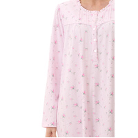 Designed with thoughtful feminine detailing, this ladies winter nightie includes a flattering V-shaped yoke with self piping and pintuck accents on either side of the centre front button placket. Soft gathers fall from the yoke to create a relaxed, comfortable fit that allows for ease of movement throughout the night. The neckline is finished with a narrow self-fabric frill, adding a subtle decorative touch to this elegant and practical design.