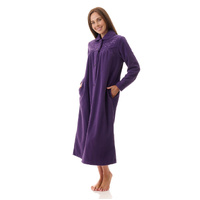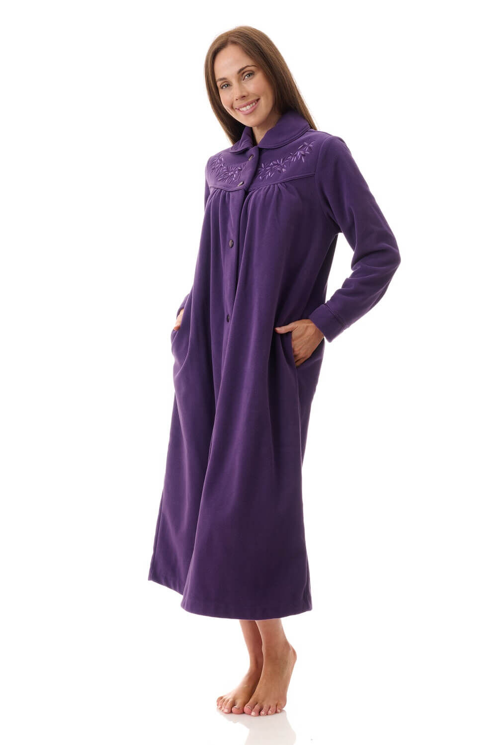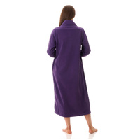 Womens Givoni Purple Button Mid Length Fleece Winter Dressing Gown Robe 74