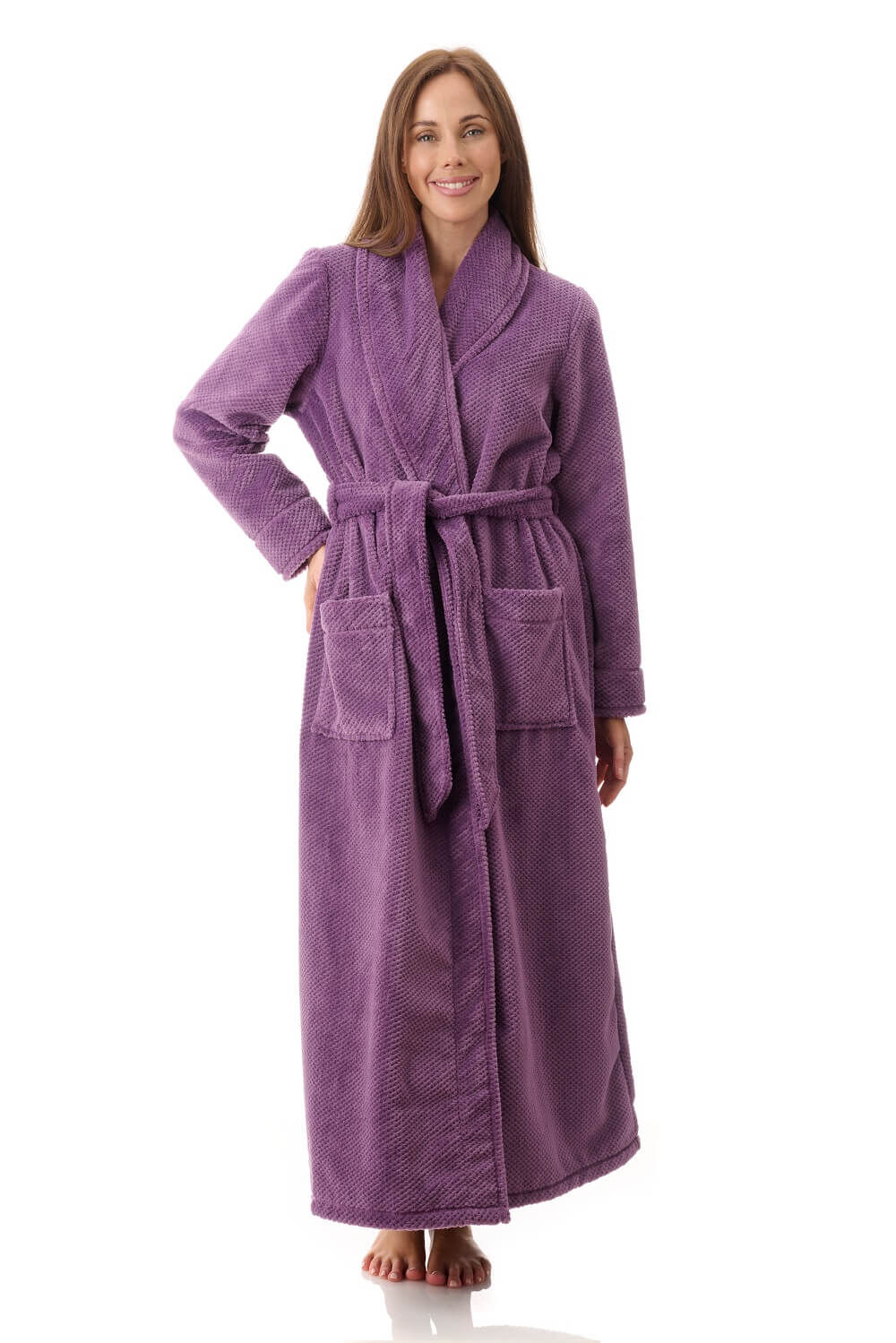 Womens Givoni Purple Long Length Wrap Luxury Winter Dressing Gown Bath Robe – 47 Mulberry