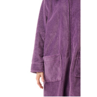 Womens Givoni Purple Long Length Zip Fleece Luxury Dressing Gown Bath Robe – 32 Mulberry