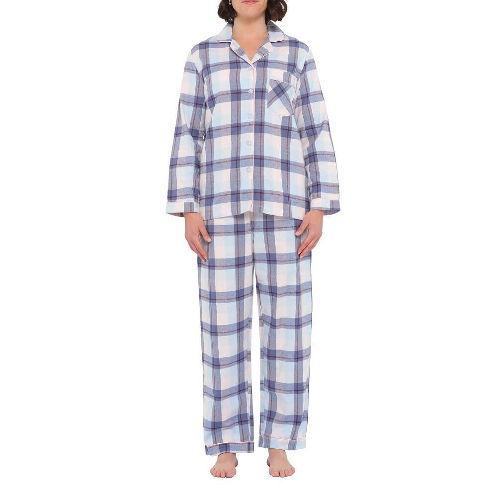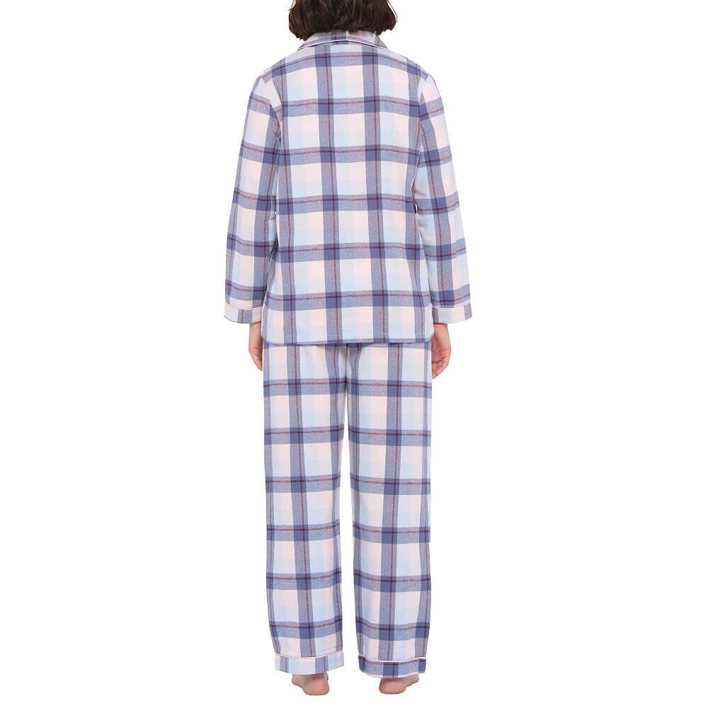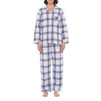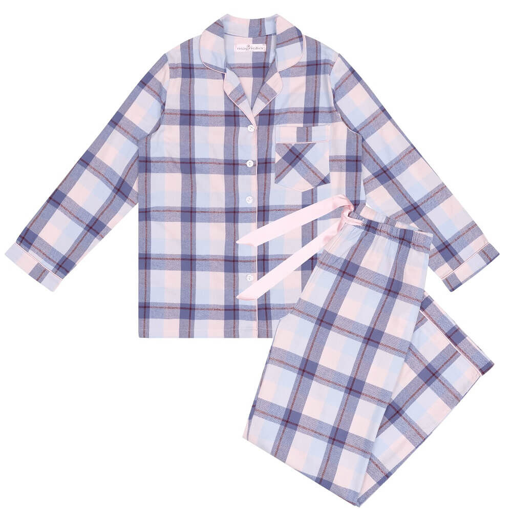 Womens Magnolia Lounge Blue Check Cotton Flannel Winter Long Pyjama Set