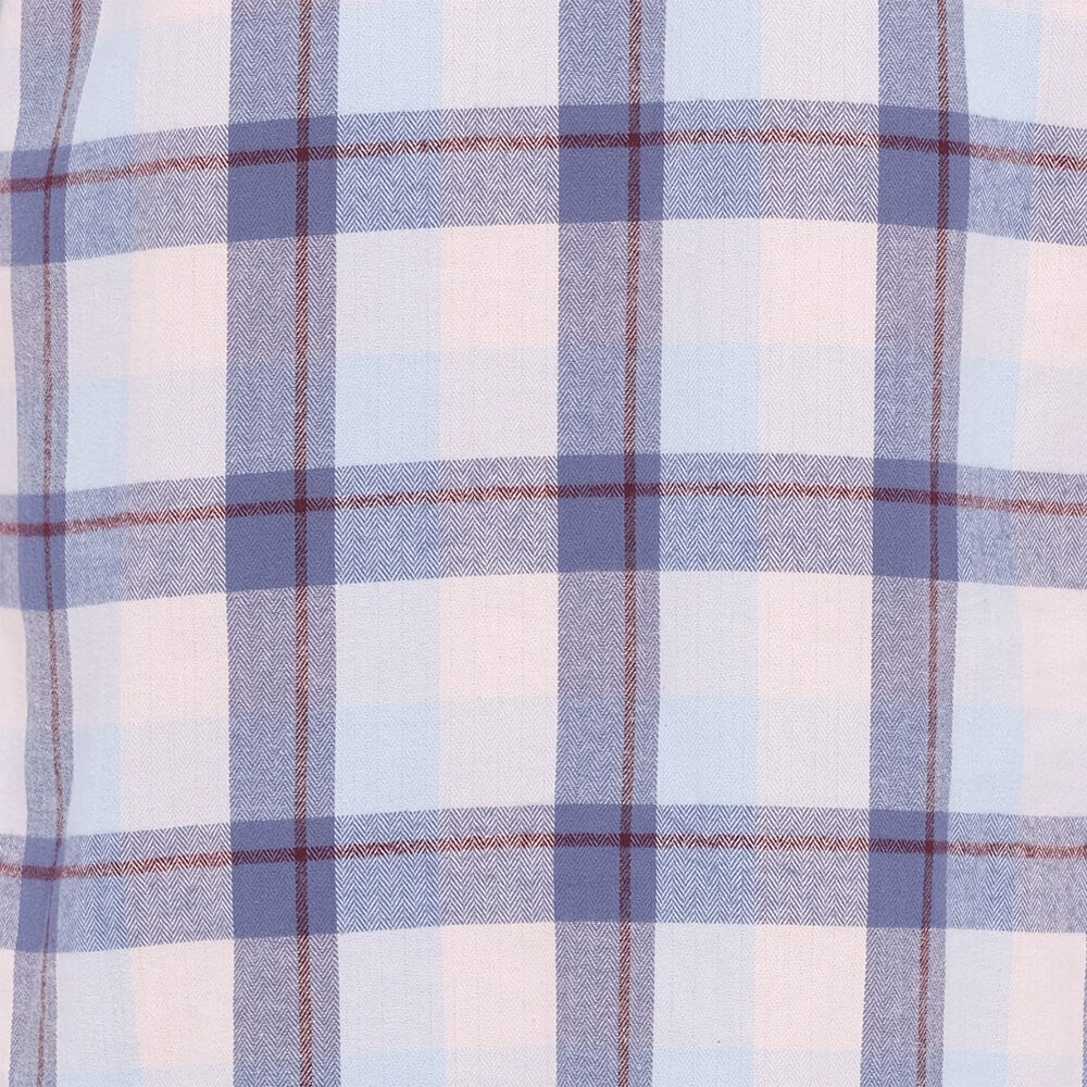 Crafted from 100% brushed cotton yarn-dyed flannelette, these women’s winter pyjamas offer superior softness, breathability and warmth without feeling heavy. The classic blue and pink check pattern, complemented by elegant pink piping and satin trims, delivers a sophisticated yet relaxed look that is perfect for both sleeping and lounging at home.