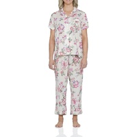 Womens Magnolia Lounge Cream Floral Short Sleeve Summer Capri Pyjama Pants Set