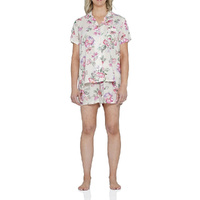 Womens Magnolia Lounge Cream Floral Viscose Summer Short Pyjama Set