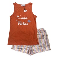 Womens Orange Relax Cotton Singlet Satin Shorts Summer Pyjama Set